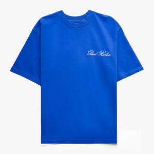 Elevate your everyday wardrobe with this oversized essential, crafted from 100% premium cotton terry in a rich blue tone. Lightweight yet durable, it blends comfort with standout design — featuring embroidery on the front and a screen print on the back for a clean, modern aesthetic.